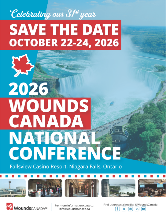 Wounds Canada’s National Hybrid Conference, being held October 22-24, 2026 at the Fallsview Casino Resort, Niagara Falls, Ontario, will showcase Canadian excellence in practice, research, education and industry innovation.